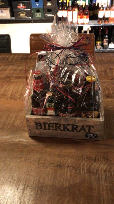 Maak het uniek! Kies voor een op maat samengesteld pakket. Denk aan bierpakketten, wijnpakketten of een mooie fles gedistilleerd.