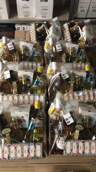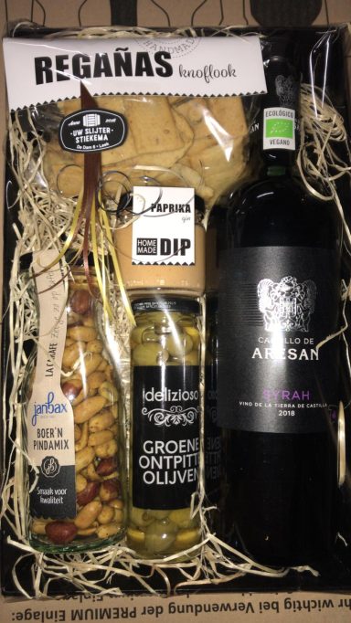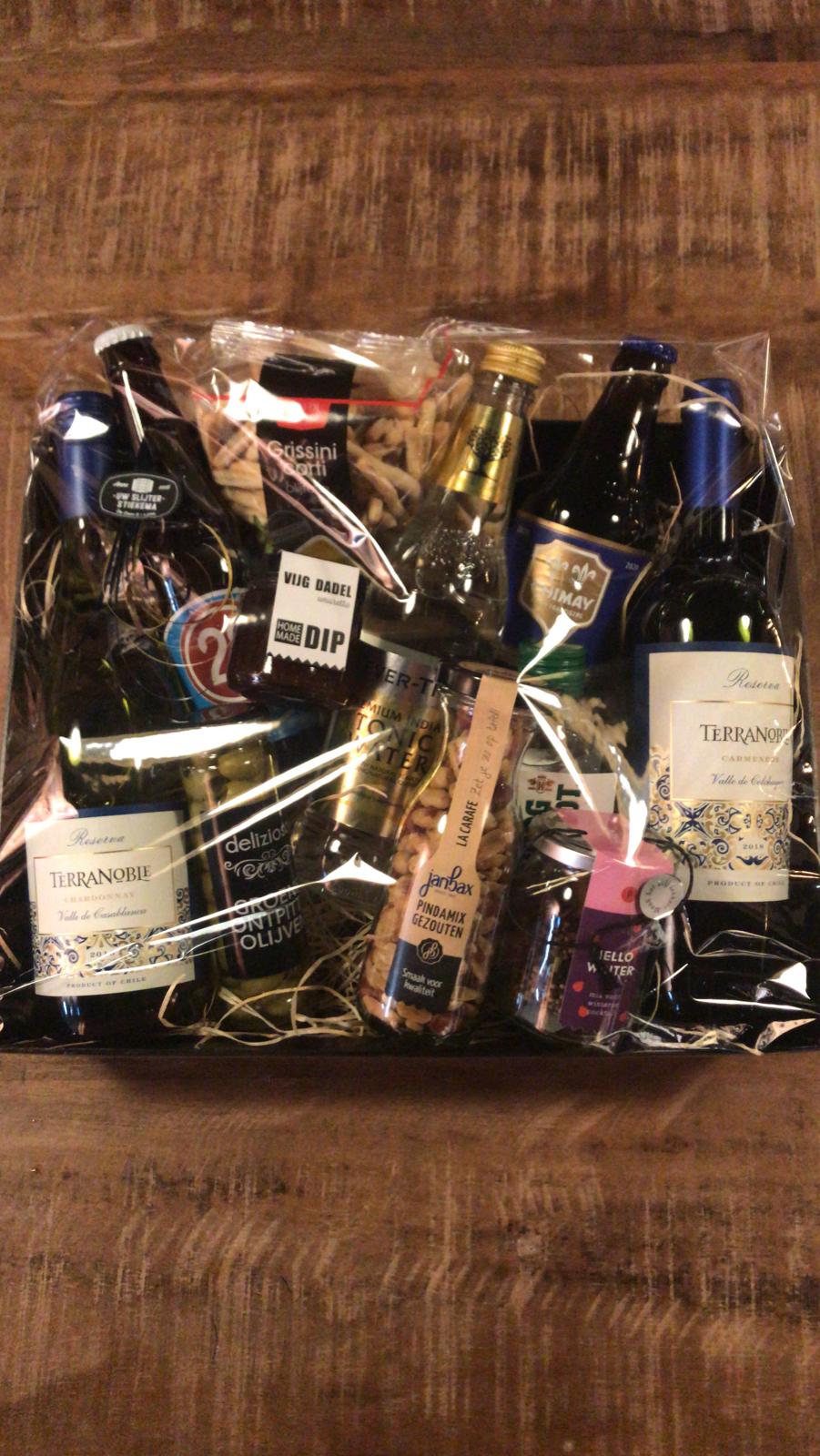 Uiteraard kunnen we de pakketten aanvullen met lekkernijen zoals nootjes, chips, olijven en nog veel meer.